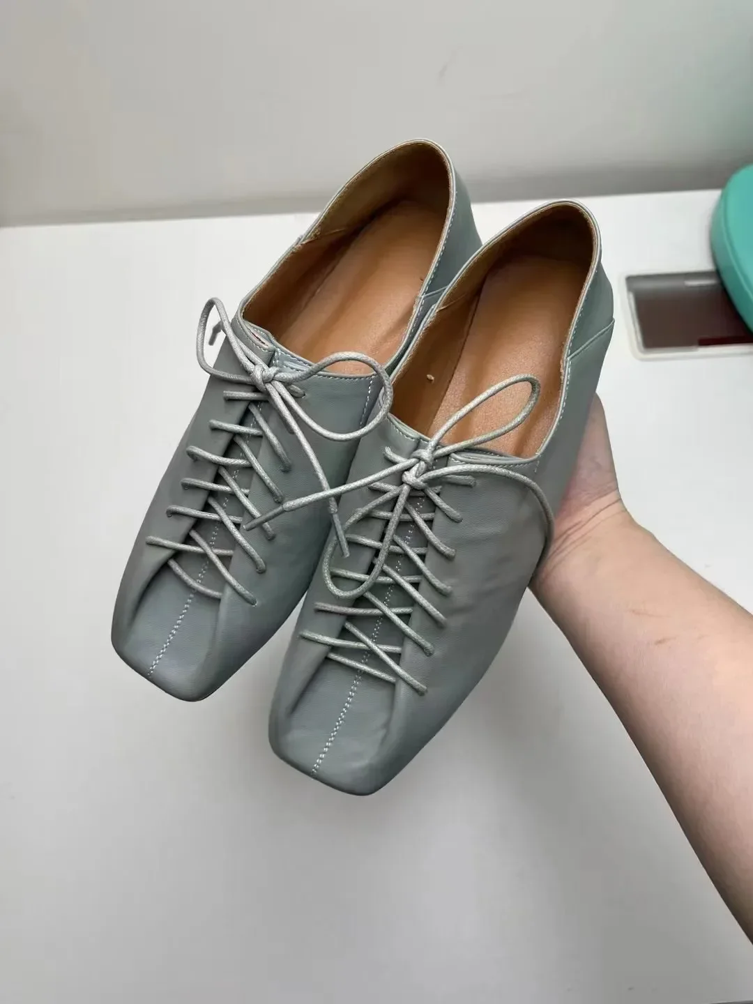 2025 Spring Square Toe Cross Straps Flat Shoes Shallow Lace-Up Office Outdoor Shoes Solid Color Fashion Ladies Casual Shoes