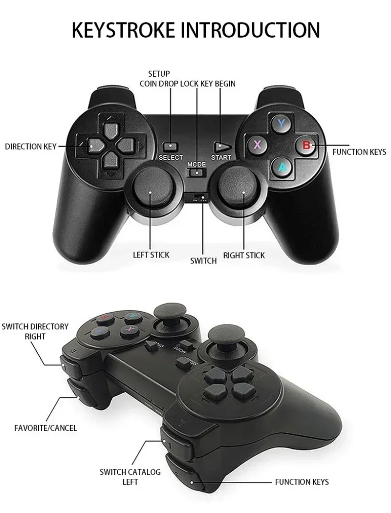 3、Wireless Controller :Enjoy seamless gaming with the included wireless controller, offering Bluetooth 2.4 G connectivity for a lag-free gaming experience.