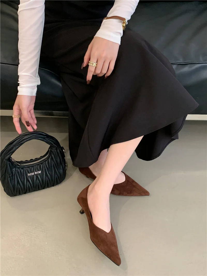 Bailamos Autumn Pointed Toe Women Sandals Sexy Shallow Slip On Pumps Shoes Fashion Thin High Heel Ladies Elegant Dress Shoes