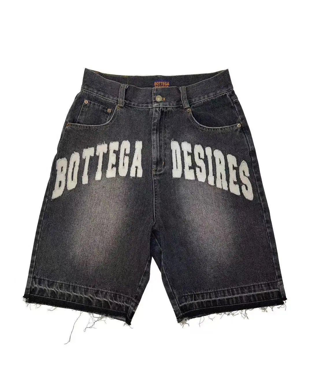 Bottega Desires Trend Men's Fried Street Loose Five-point Pants Fashion Trendy Brand Retro Y2k Letter Denim Shorts Baggy Jeans