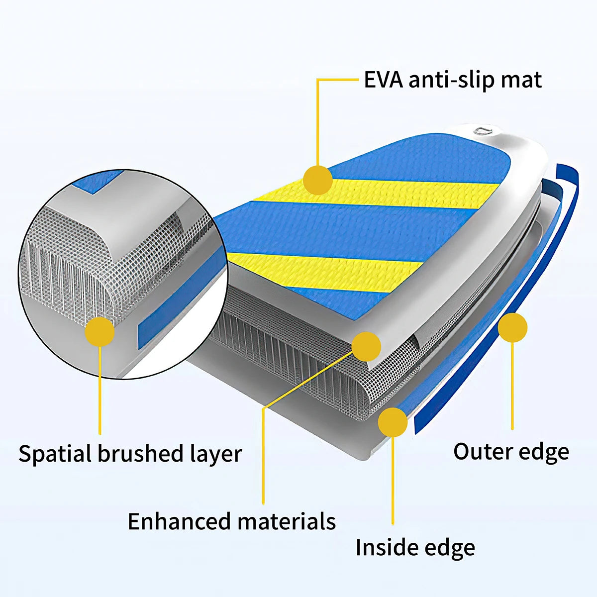 4.Comprehensive Accessories: The package includes a hand pump, backpack, leash, and repair kit, ensuring a convenient and worry-free experience whether you're fishing, surfing, or just enjoying the water.