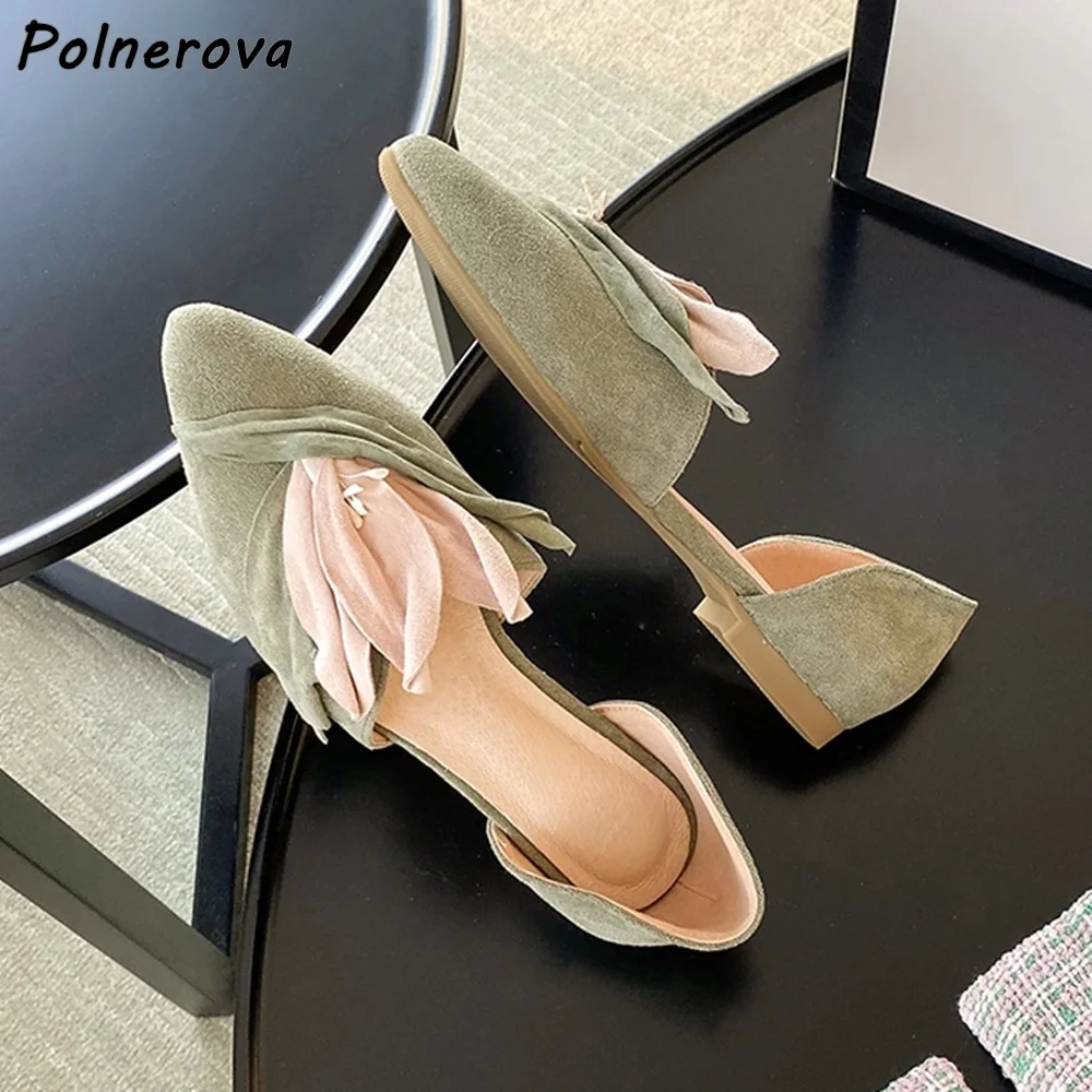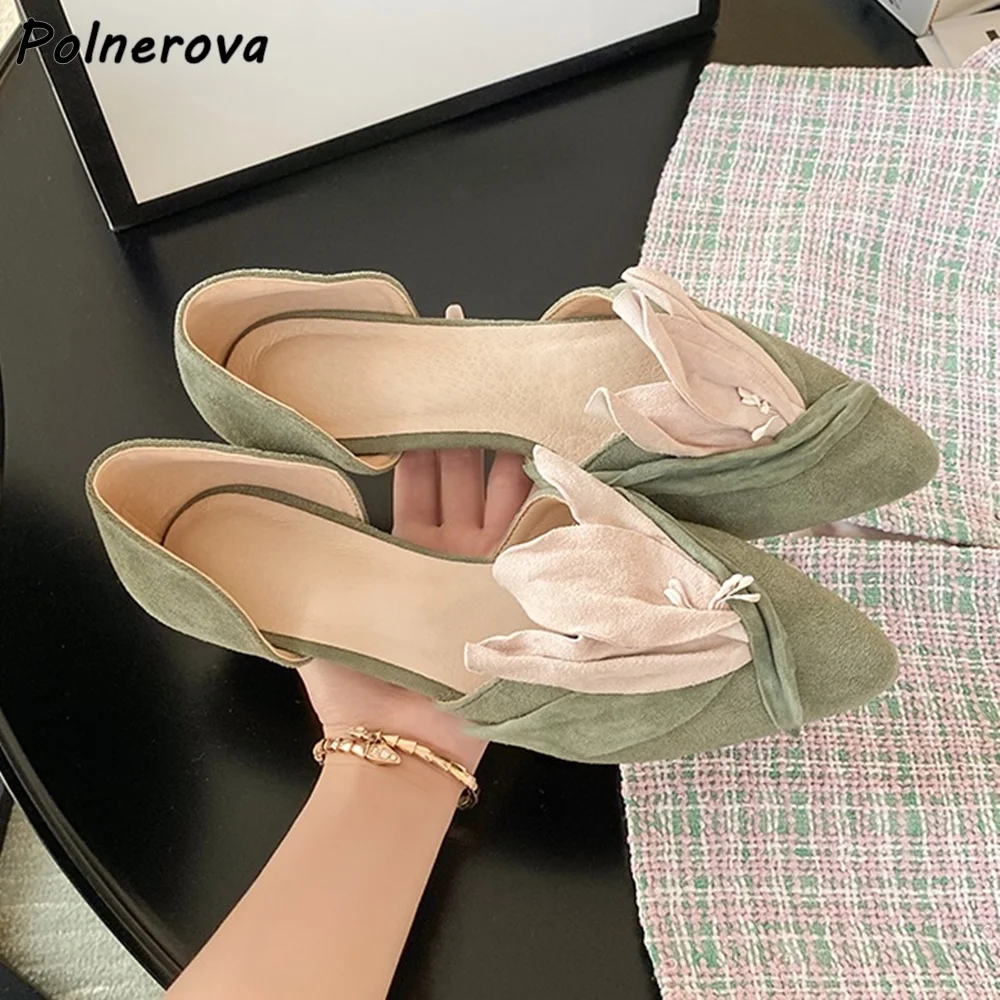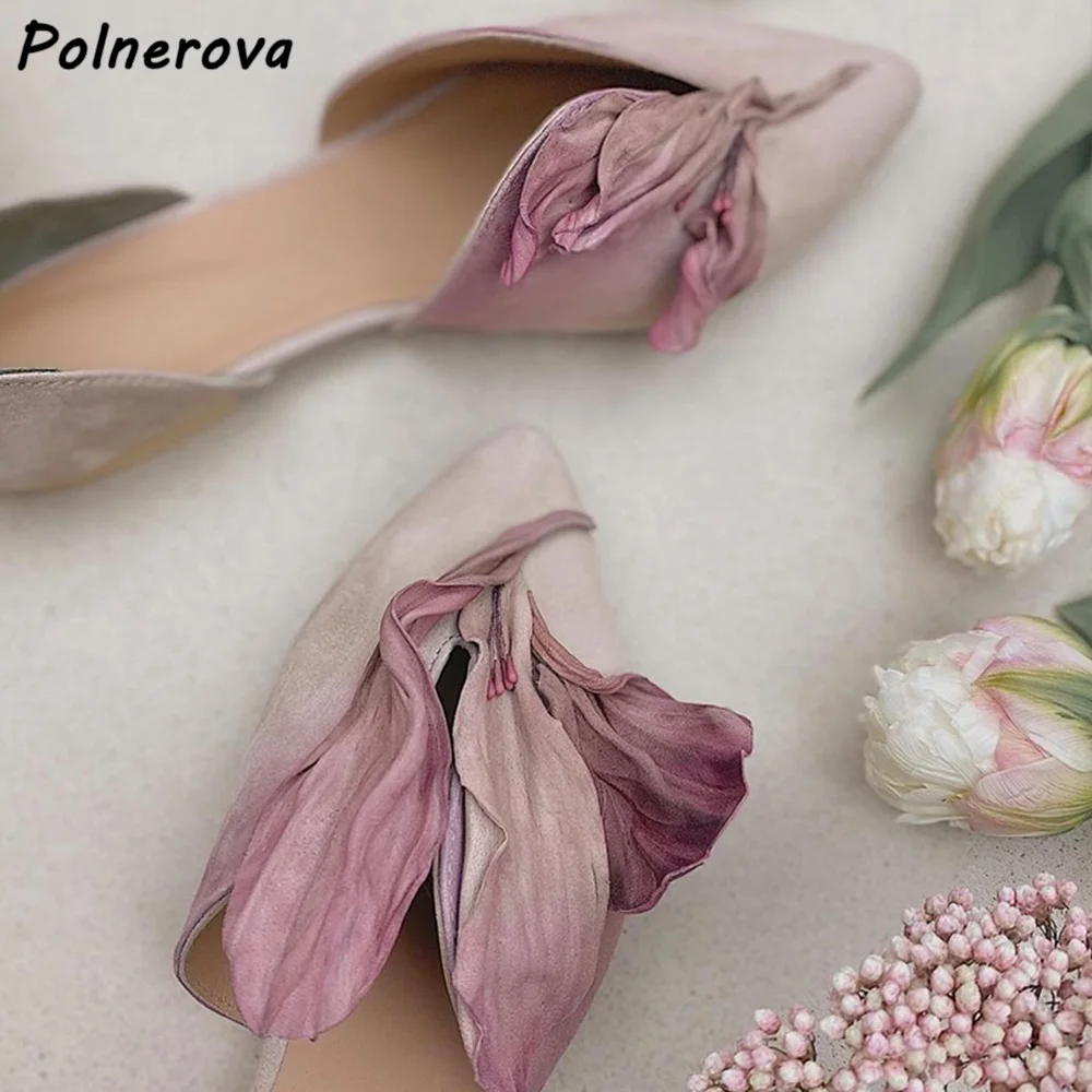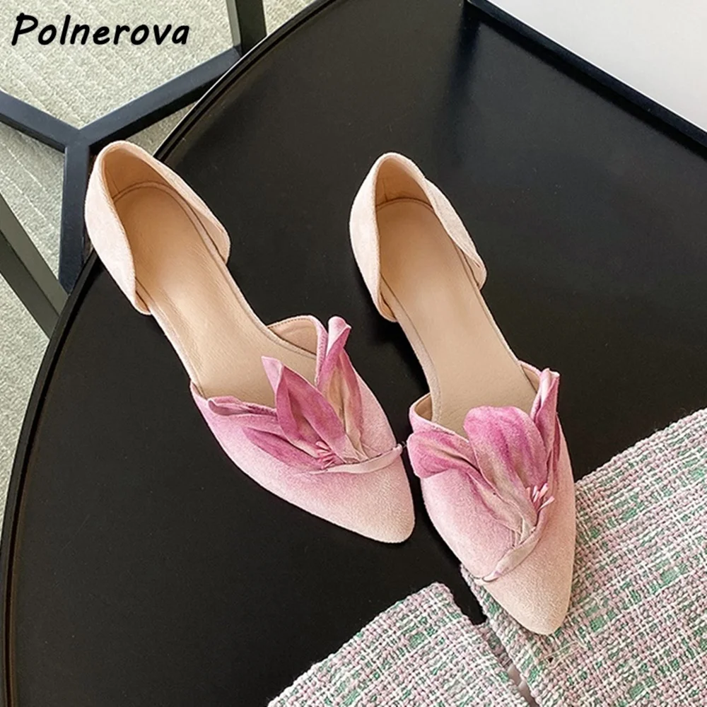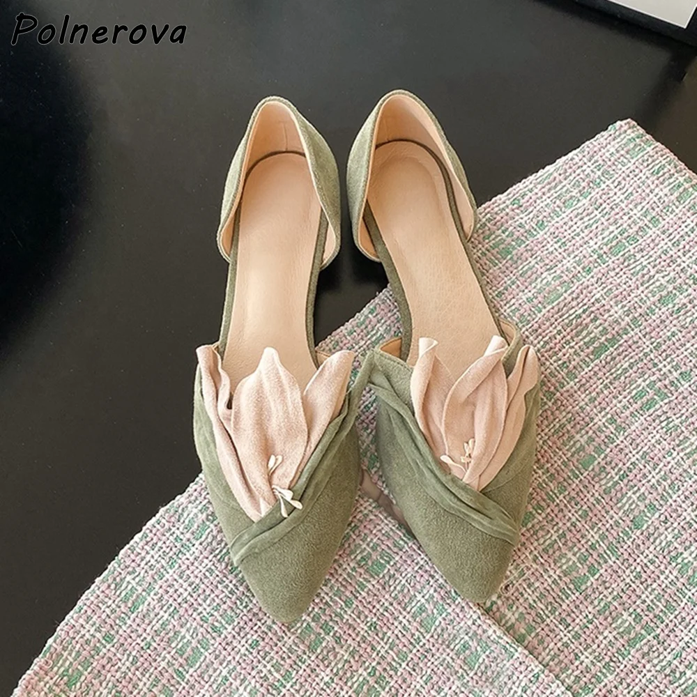 Green Pink Bud Pumps Flat Pleated Gradient Flower Mid Empty Genuine Leather Dress Shoes Elegant Women's Lovely Pumps 2025