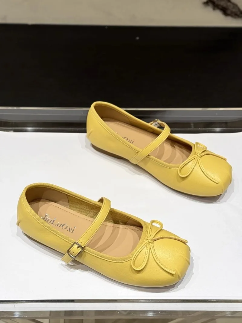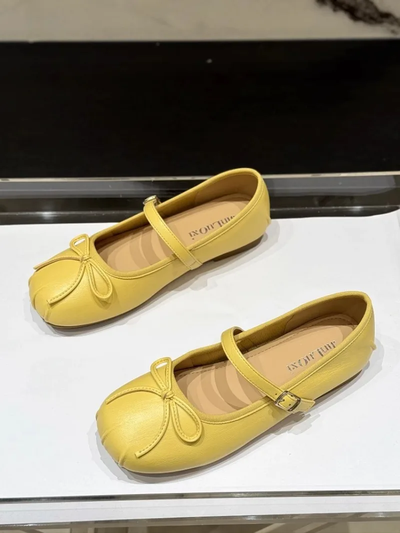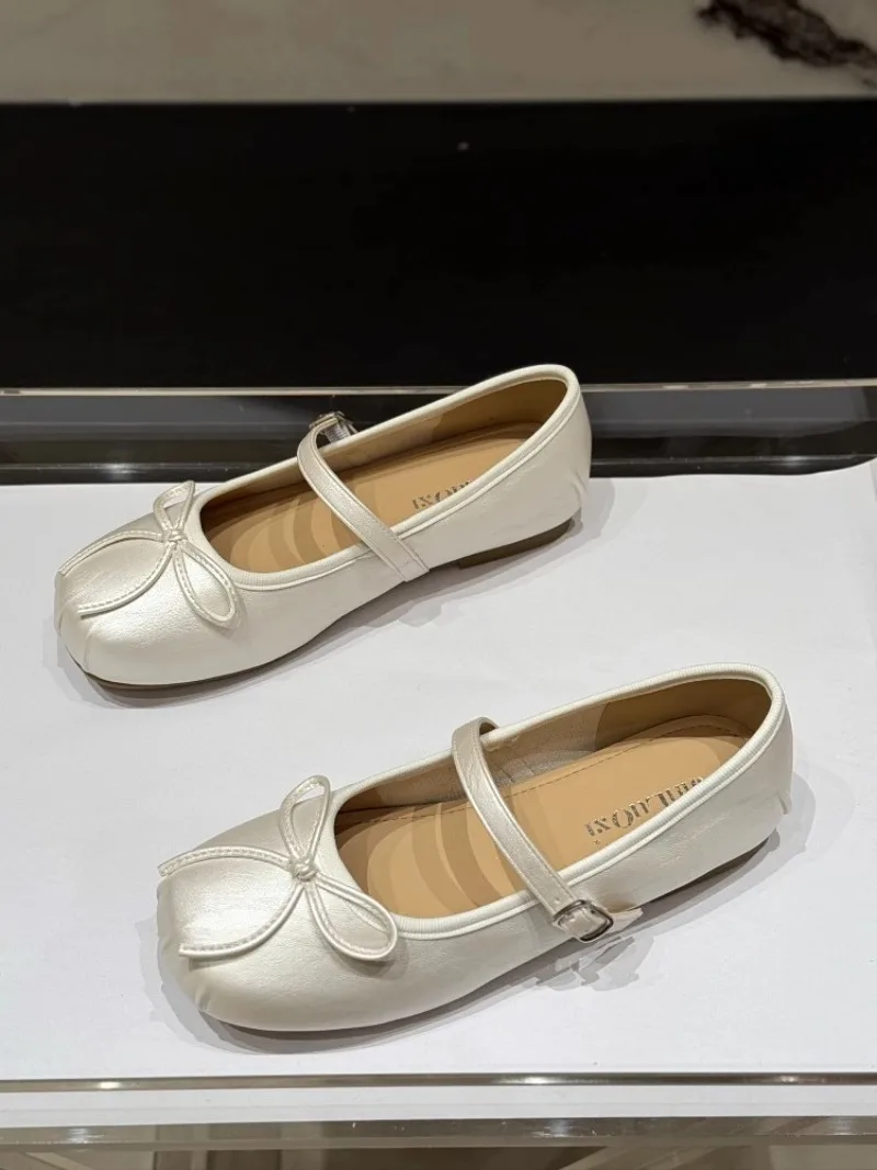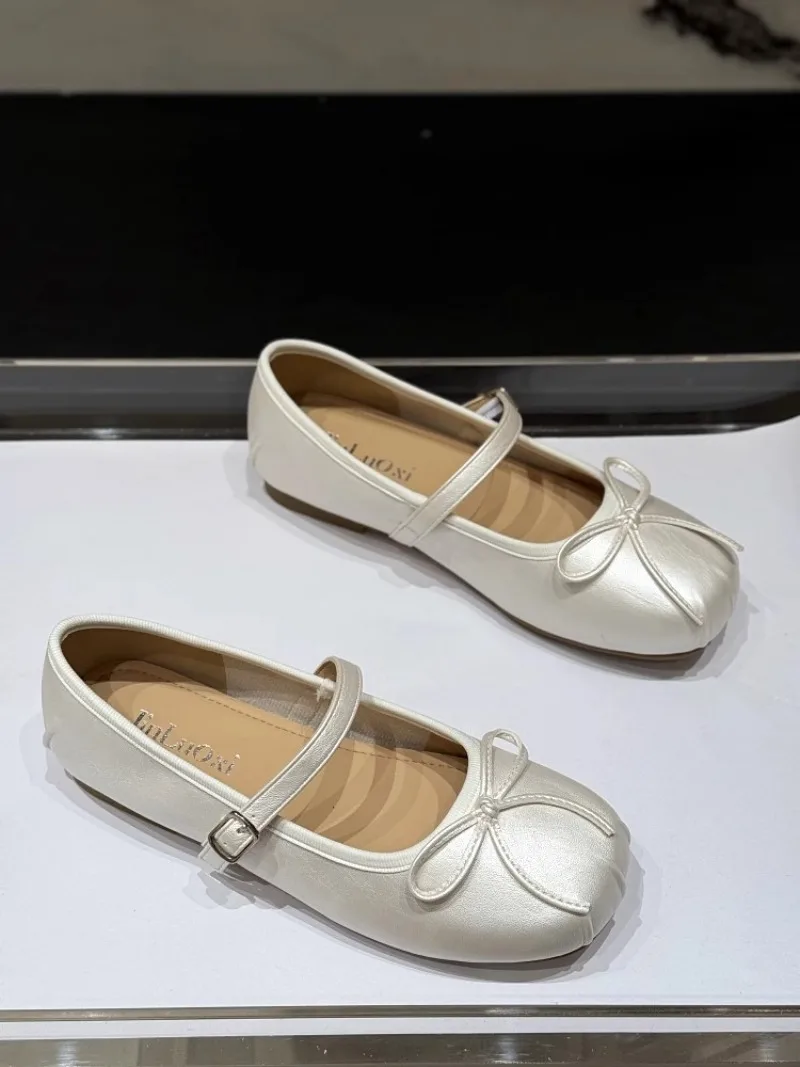 Low-heeled Pumps Women's Leather Flat Bottom with Mary Jane Small Leather Shoes Women's 2025 Summer New Bow Single Shoes Women