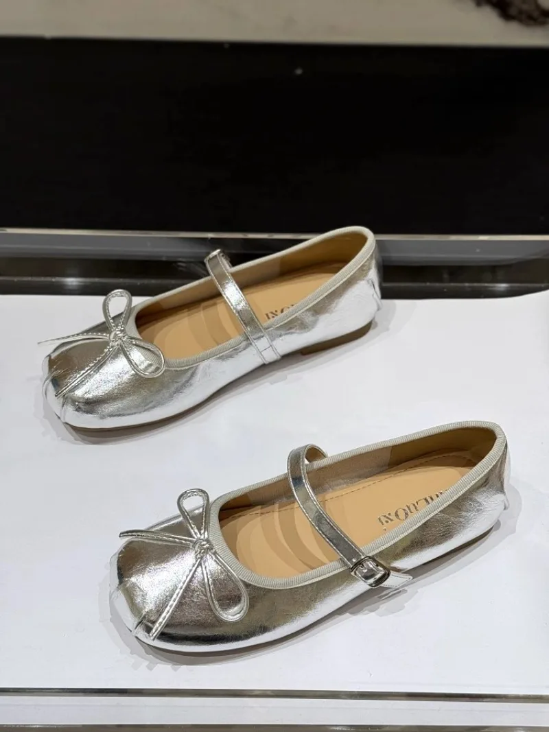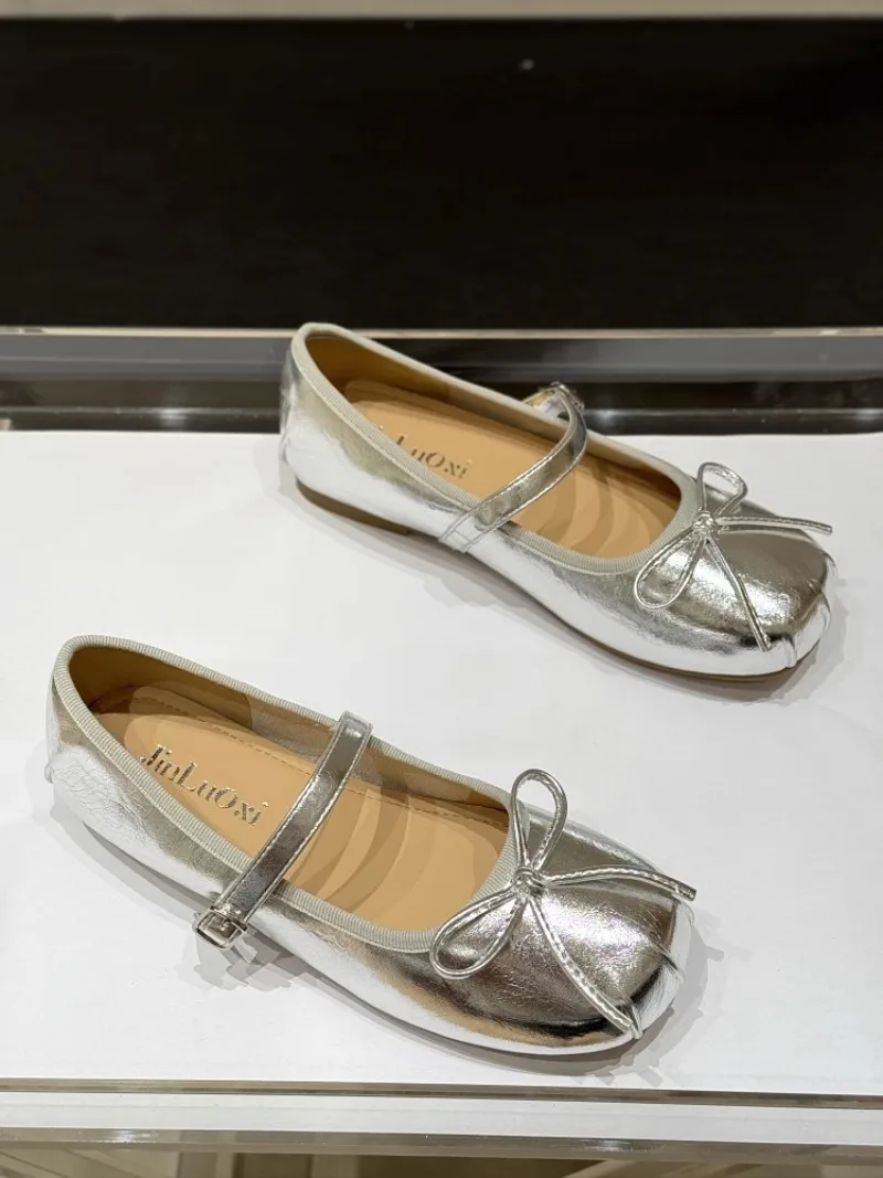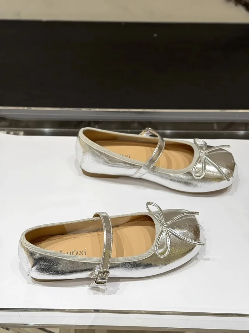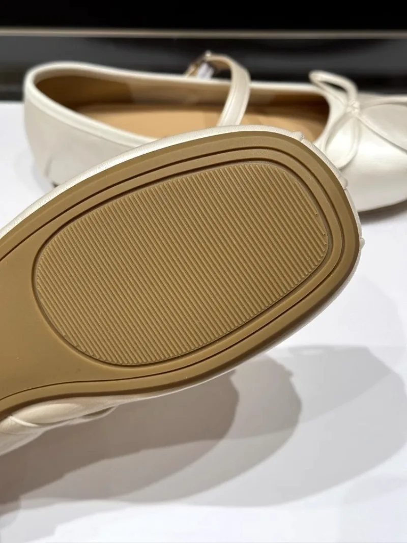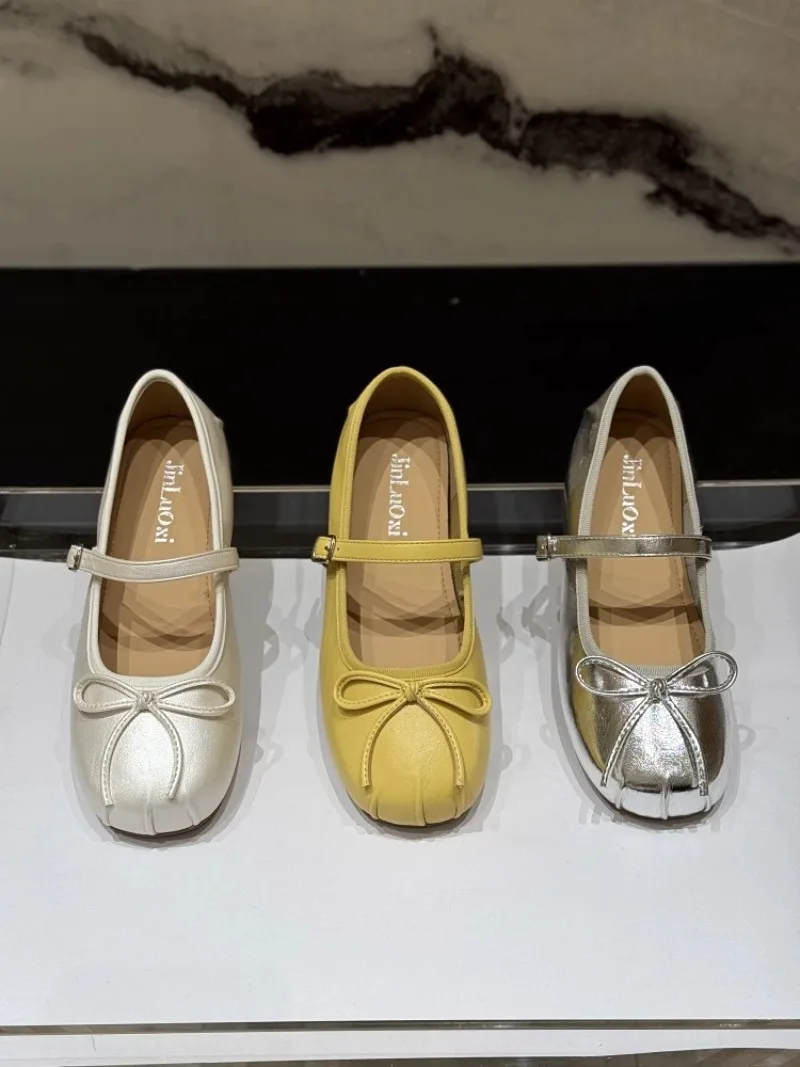 Low-heeled Pumps Women's Leather Flat Bottom with Mary Jane Small Leather Shoes Women's 2025 Summer New Bow Single Shoes Women