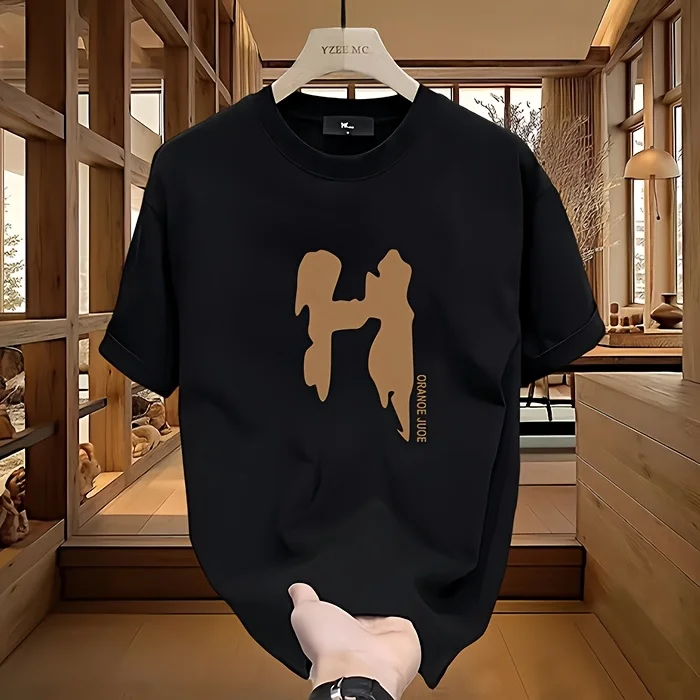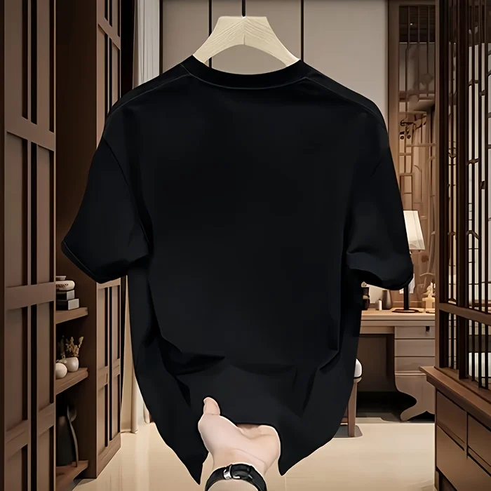 Men's Casual Black Cotton T-Shirt with "HUSTLE" Print - Short Sleeve, Round Neck, Machine Washable, Loose Fit