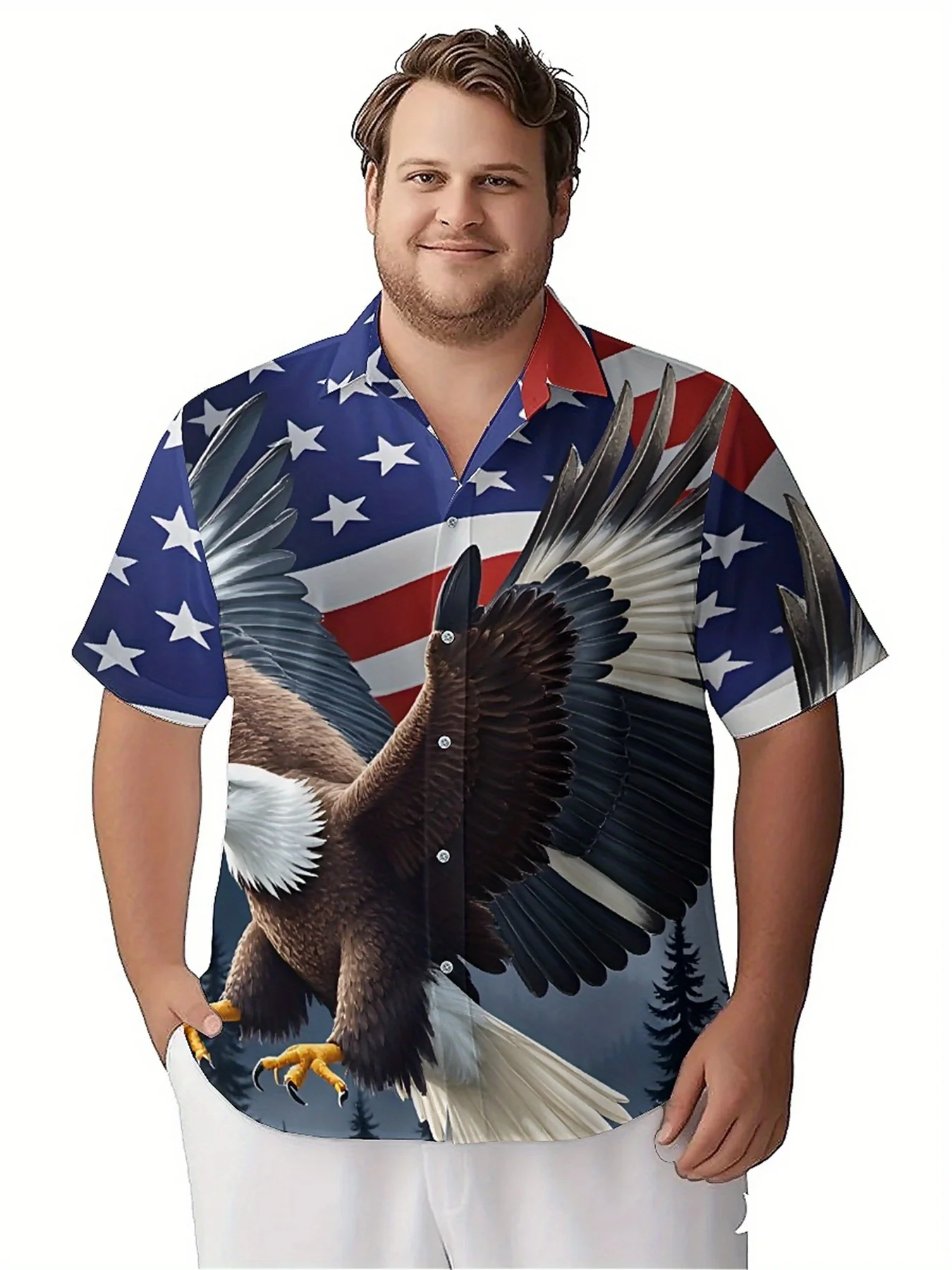 Men's Plus Size Hawaiian Shirts Independence Day Pattern, Button Up Shirts, Unisex Casual Clothing, Summer Tops