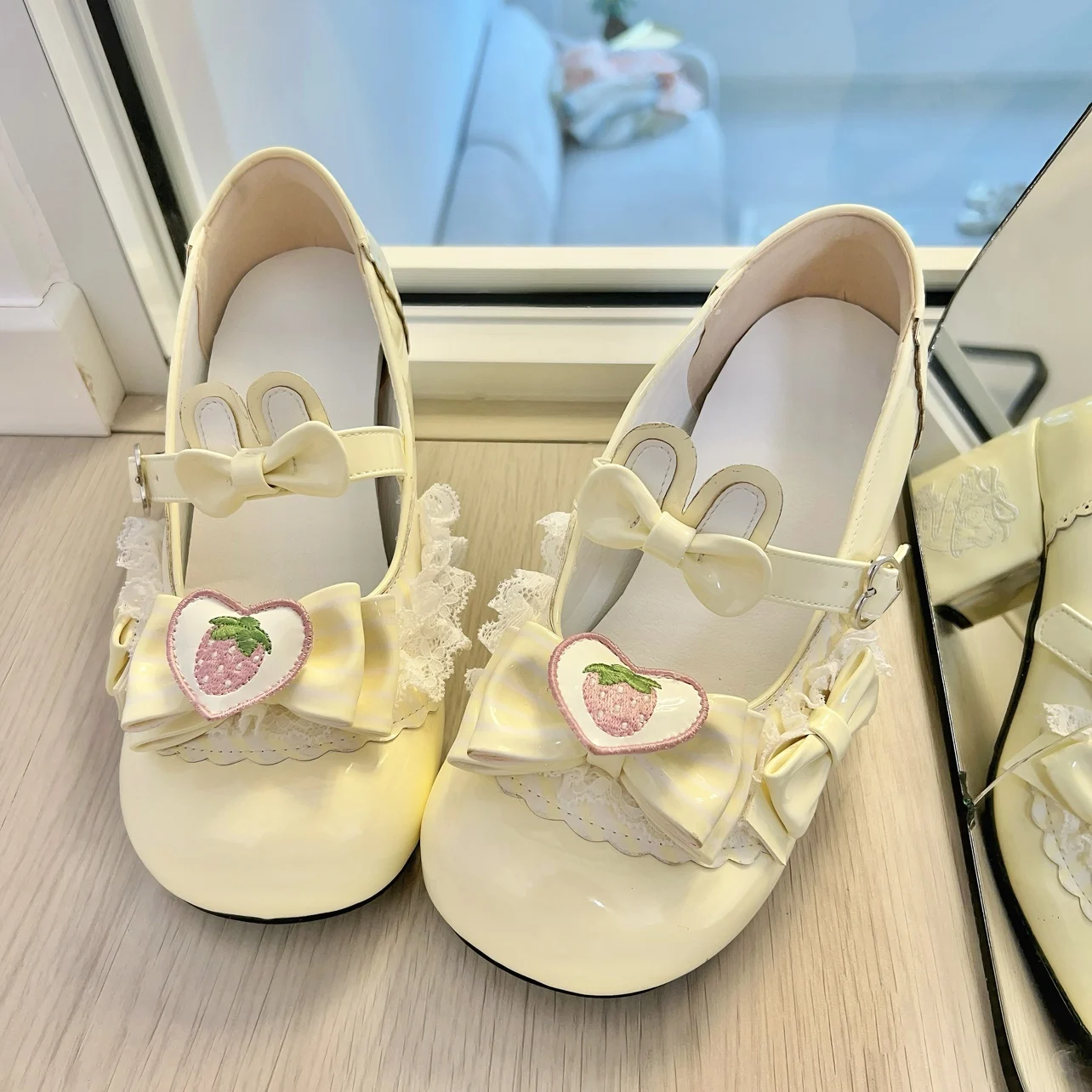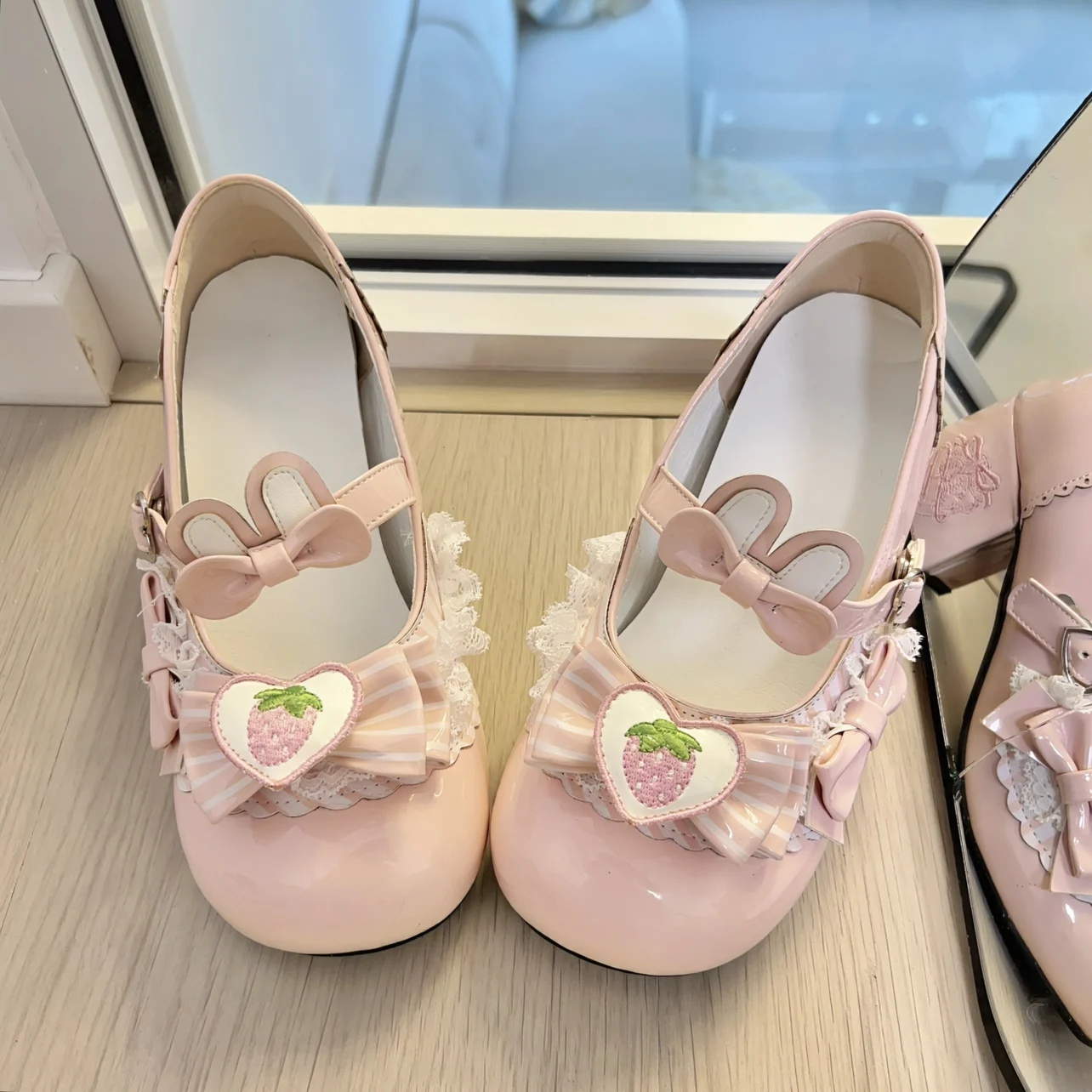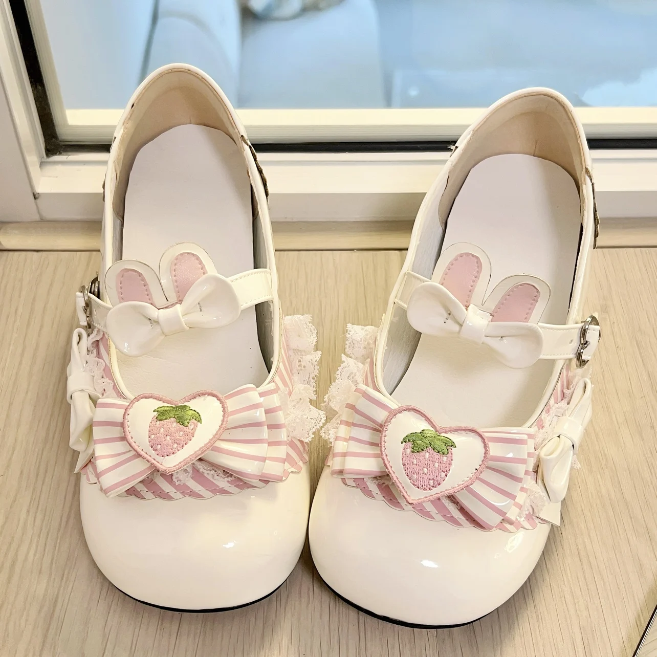 Original Sweet Strawberry Bow Cute Girl Lolita Shoes 2025 New Kawaii Princess Mary Jane Shoes Temperament Women's High Heels