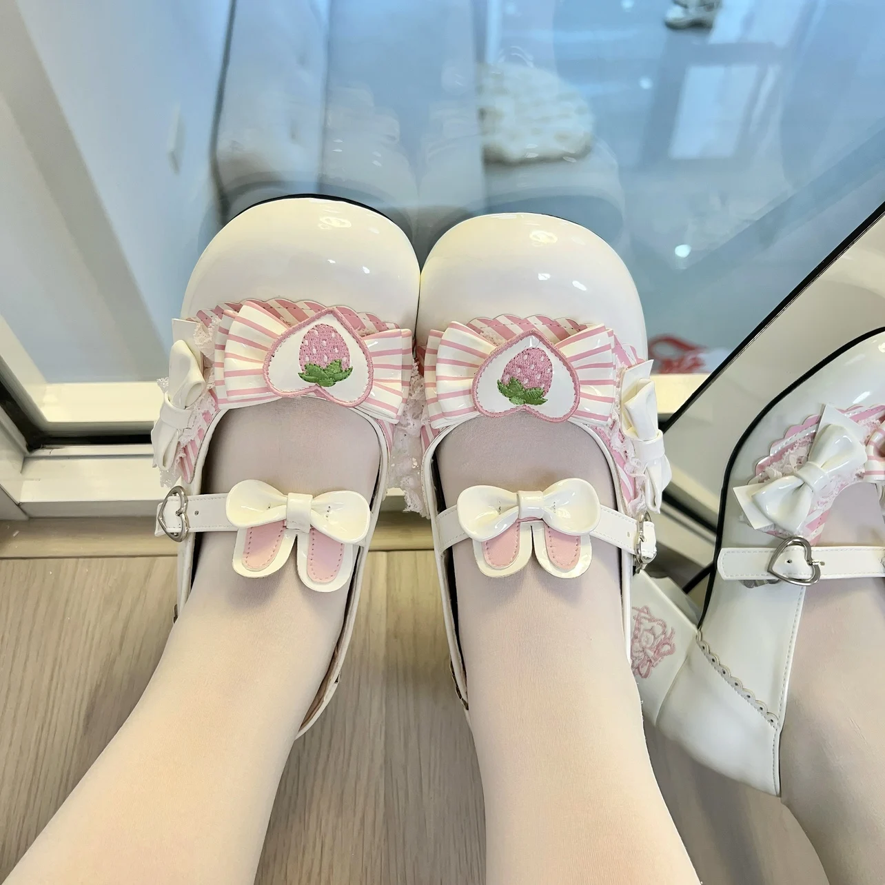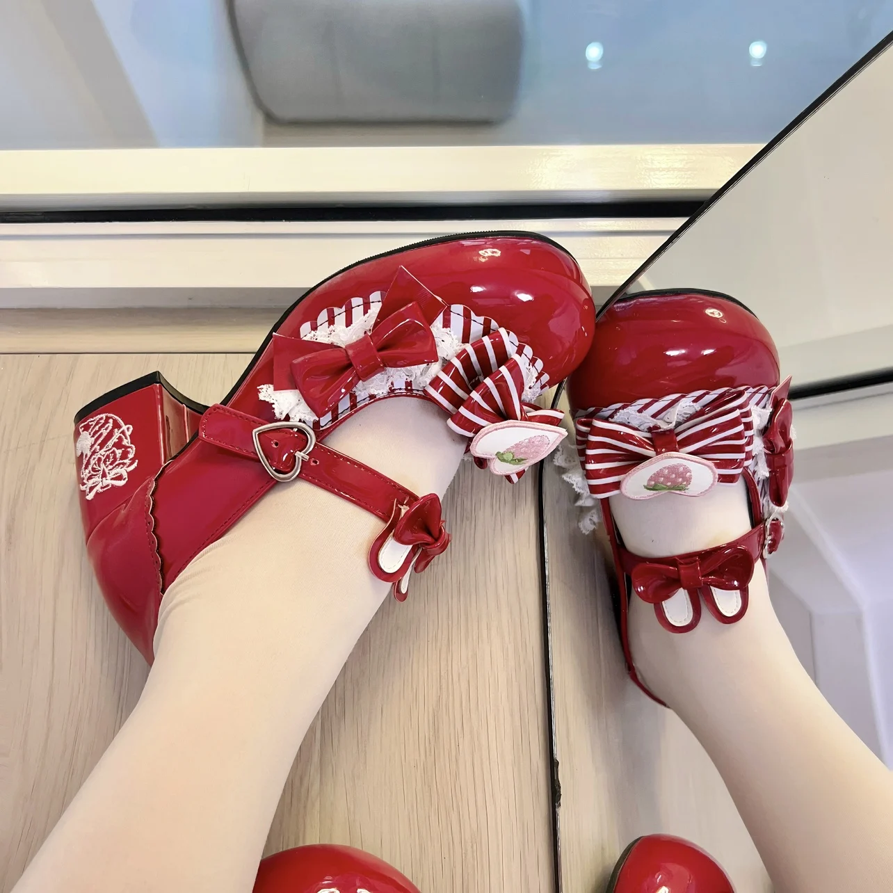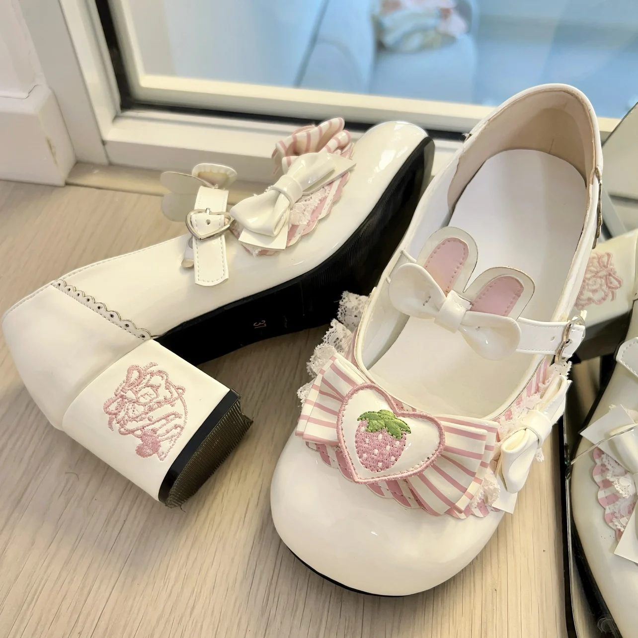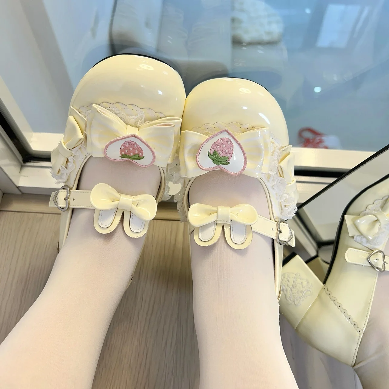 Original Sweet Strawberry Bow Cute Girl Lolita Shoes 2025 New Kawaii Princess Mary Jane Shoes Temperament Women's High Heels