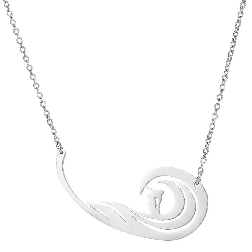 Sport Kayaking Pendant Neckalce Engraved Stainless Steel Jewelry for Women & Men Handmade Jewelry Surfing Boating Collares