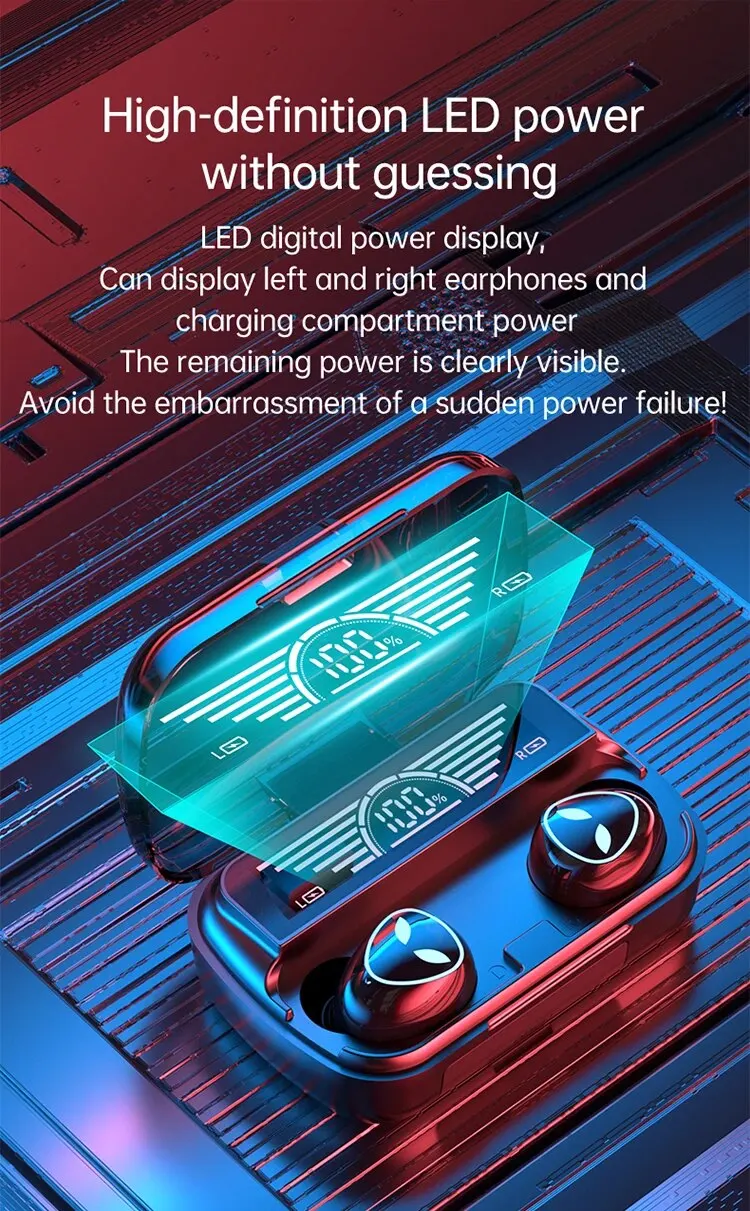 • Waterproof LED Display :The earbuds have a waterproof LED display that shows the battery level and other important information, making them perfect for outdoor activities.